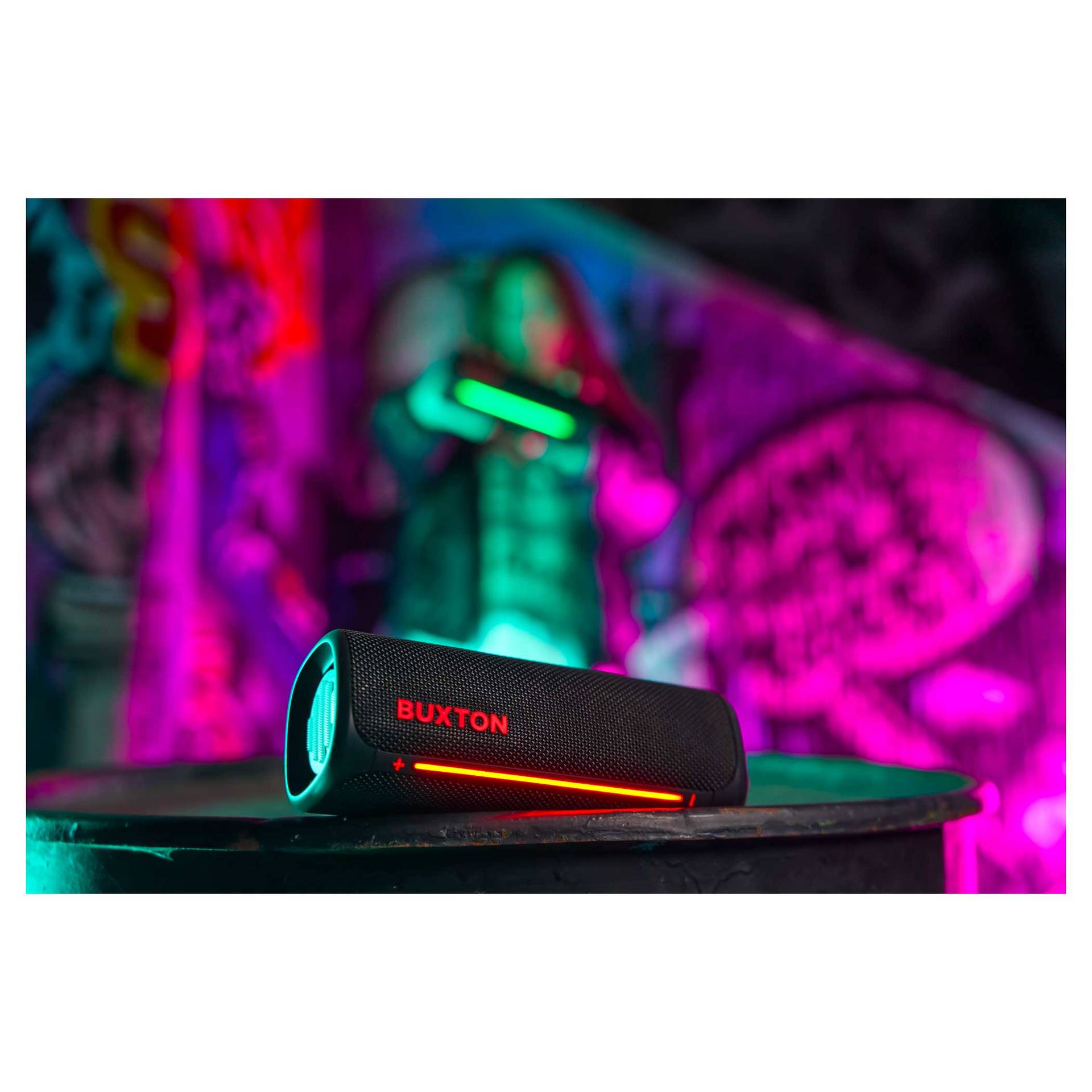 Głośnik bezprzewodowy Buxton BBS 420 CLIFTON łączy w sobie wyrafinowane wzornictwo, trwałość i potężny dźwięk w jednym kompaktowym urządzeniu. Dźwięk o mocy 30 W z technologią Power Bass zapewnia doskonałe wrażenia słuchowe na imprezach, spotkaniach rodzinnych lub podczas relaksu z ulubionymi audiobookami. Certyfikat wodoodporności i odporności na wilgoć IPX7 sprawia, że nie musisz obawiać się zabrania głośnika na zewnątrz – krople wody lub wilgoć nie zaszkodzą mu. Stylowa tekstylna osłona wygląda elegancko, a efekty świetlne podkreślą wieczorną atmosferę. Łatwą, intuicyjną obsługę uzupełniają wskaźniki LED. Wbudowany mikrofon umożliwia odbieranie połączeń bez konieczności sięgania po telefon.